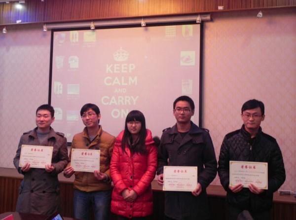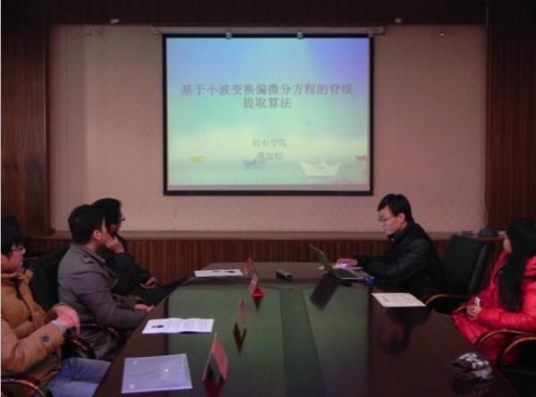 12月19日下午2点30分,我院学术分论坛之学术论文报告会在A17号楼502室顺利进行。本次报告会由污污漫画 研究生会主办,机电学院研究生会联办。会上来自污污漫画 的刘文良、董菲同学以及来自机电学院的戚永爱、潘加松同学根据其论文的主要内容做了报告。污污漫画 刘斐文辅导员为获奖同学颁发奖状。 报告会上4位同学向我们展示了不同领域的专业知识。刘文良同学提出了基于面向对象Petri网的电梯门系统的建模,对建模方法进行了相应研究。董菲同学提出了“应用技术成果形成系统” 的建模与应用,并改进了岭回归方法。戚永爱同学讲述了自己在超声喷丸辅助激光熔覆再制造技术方面的研究。潘加松同学讲述了基于小波变换偏微分方程的脊线提取算法,并展示了算法的仿真测试。会议报告者清晰明了的报告思路与丰富详实的报告内容,体现出了我院与机电学院研究生严谨求实的科研态度与百折不挠的科研精神。 报告会部分,学院刘斐文辅导员为以上同学颁发了获奖证书并合影留念,同时刘导还鼓励更多的同学能够参加到学术论文的评选活动中来,整体提高学院的科研创新能力,进一步在学院内营造更加浓厚与积极向上的学术氛围。