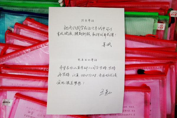 在信笺的反面,学院院长姜斌教授祝所有考研学子在这次考试中可以乘风破浪,披荆斩棘,取得优异成绩。党委书记王勤教授希望所有认真考研的同学坚持,坚持,再坚持;认真,细心应对,考出好成绩,实现深造梦想。在短短的几句话中,透露出学院领导对2010级同学的深切关怀。
