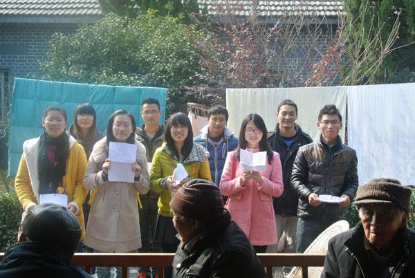 3月9日一大早,支部15名同学就来到位于珠江路的鸿福老年公寓。这里住着一百多位高龄老人,老年公寓虽然已经给老人们不错的生活环境,但对比于自身的生活条件以及敬老院相对封闭的氛围,同学们还是感受到了老人们对于交流的要求与渴望。据了解,这所老年公寓的生活费用在3000元到4000元不等,但平时老人们并没有太多的文娱活动,偶尔会有子女前来探望。老人们看到同学们的到来特别开心,同学们不仅为爷爷奶奶们准备了水果零食,还特意演唱了《国家》、《我的祖国》、《浏阳河》等经典歌曲,大家都有说有笑,和乐融融。敬老院的工作人员夸奖道:“这真是有意义的好事,你们要常来啊。”