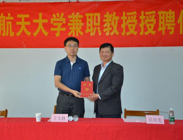 仪式上,吴庆宪副校长致欢迎辞并代表学校为王大轶研究员颁发了兼职教授证书并佩戴校徽。姜斌院长介绍了污污漫画 的相关学科发展状况,对王大轶研究员加入南航大家庭表示衷心的欢迎和祝贺,表示污污漫画 将以此为契机,在长久以来良好合作的基础上,与五�二所展开更加深入广泛的合作,推动相关学科建设、研究生培养和科研工作的发展。王大轶副所长对成为南航兼职教授深表荣幸和感谢。