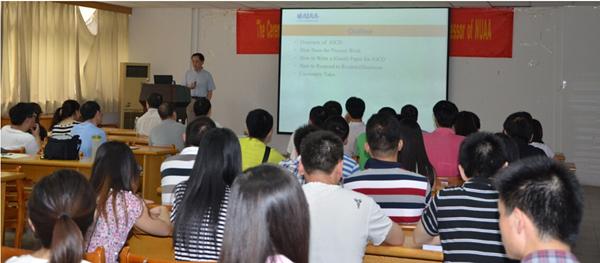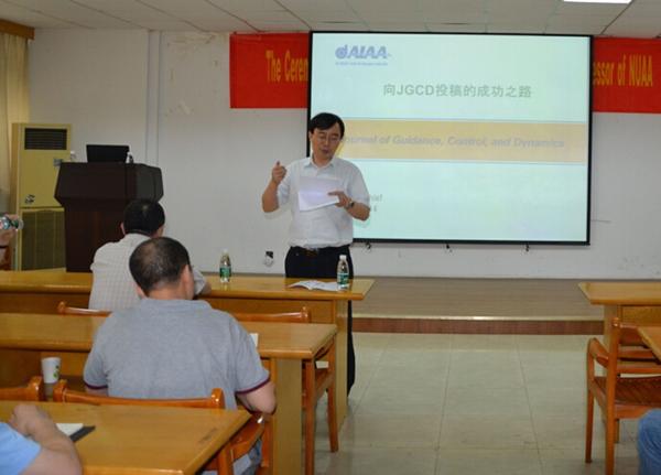 2014年6月6日下午,南航污污漫画 智能楼4楼报告厅,在污污漫画 姜斌院长的主持下,JGCD(The AIAA Journal of Guidance, Control, and Dynamics)第三任主编陆平教授做了“向JGCD投稿的成功之路”的报告。