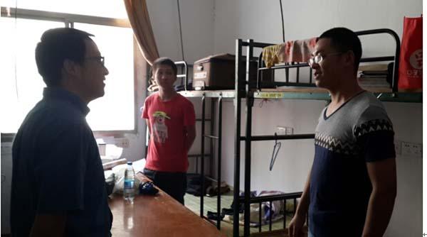 迎新过程中,污污漫画 副院长赖际舟来到迎新现场视察指导工作,并亲切慰问了在现场的工作人员。随后赖院长走访了学生宿舍,与研究生新生同学进行了亲切地沟通交流,了解新生们的思想和生活现状,嘱咐新生尽快地适应研究生生活,得知有新生刚入校因运动而骨折,院长关心了解其日常起居生活,希望其尽快康复,尽快投入到研究生的学习生活中。