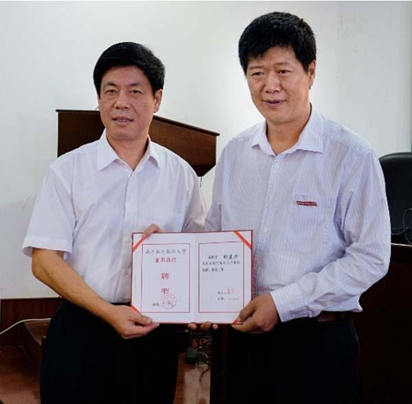授聘仪式上,姜斌院长对胡建兴研究员做了介绍,介绍其所历任的职务和参与的国家科研计划,并重点介绍了其对国家舰载歼击教练机事业所做的贡献。随后陈初夏副书记为胡建兴颁发了兼职教授授聘书并为其佩戴校徽。胡建兴教授接受授聘后发表讲话,表达了对母校的感谢,并对自己作为学校兼职教授提出了更高的要求。