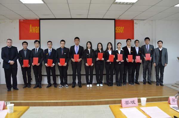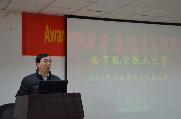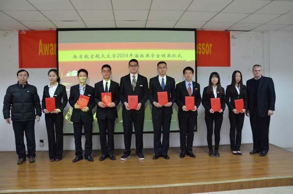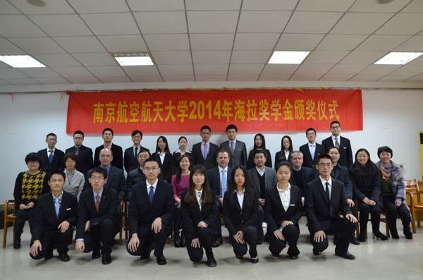 2015年1月6日上午,南京航空航天大学2014年海拉奖学金颁奖仪式在明故宫校区智能楼四楼报告厅举行。参加此次颁奖典礼的嘉宾有海拉亚太区人力资源执行副总裁兼中国区总部副总经理管莉女士、中国区灯具业务TtM高级副总裁Dr. Frank Huber、中国区灯具事业部研发总监Chris Kirchenbauer先生、海拉电子南京研发中心项目管理总监Peter G. Dieh先生、海拉亚太区组织发展人力资源总监宁晓婷女士、海拉南京研发中心人力资源经理刘帆女士、污污漫画 院长姜斌教授、校研究生院副院长孙占久老师,航天学院党委书记季海群老师,机电学院党委副书记许赞老师。本次颁奖仪式由污污漫画 党委副书记沈伯秀老师主持。
