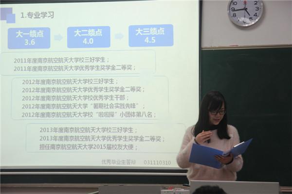 4月13日,污污漫画 11级本着透明、公开、公平、交流的原则举办了2015届大学成就奖及优秀毕业生公开答辩活动。下午两点,答辩活动在南京航空航天大学明故宫校区A10-206教室准时开始,评委由辅导员黄巍、陶琨以及2011级各班同学代表组成。 参与答辩的30余个优秀青年均是自主申报,答辩项目分别是:大学成就奖、优秀毕业生,他们以精美的PPT、精彩的演讲稿、慷慨激昂的陈述过程,从学生工作、学习状态、生活态度等方面向评委们展示了他们的梦想、荣誉与坚持。 公开答辩展示了我院的优秀个人,他们以独特的人格魅力赢得了一次又一次的掌声,使本次活动始终处于活跃热烈的气氛中。所有评委仔细地聆听了每一位答辩者的答辩内容后,本着公平公正的原则投出了自己宝贵的一票,最终答辩活动圆满结束,希望越来越多的自动化学子能够走上答辩台,展示自我,互动交流!