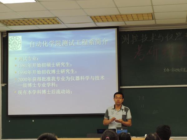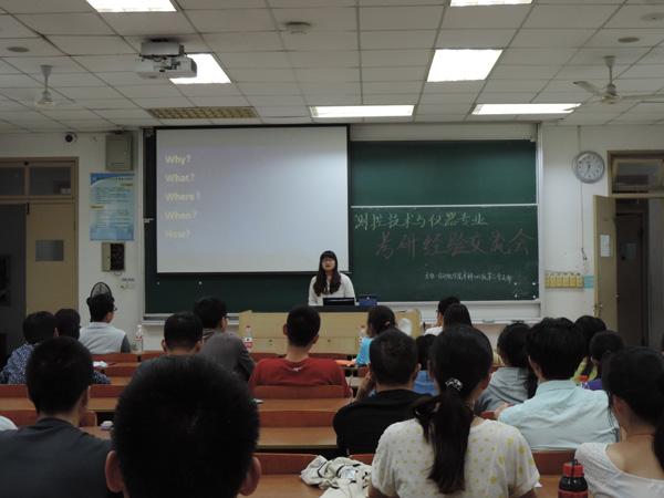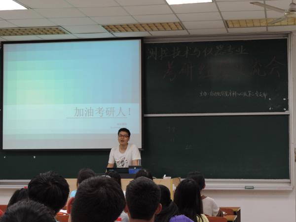 4月28日晚6:30,污污漫画 2012级本科生第二党支部在将军路校区6102教室举办了测控技术与仪器专业考研经验交流会。污污漫画 测试工程系副主任、博士生导师徐贵力教授主讲考研政策解读,2011级成功考研学生顾舒娅、仇三铭作考研经验交流, 2012级测控技术与仪器专业有考研意向的学生参加了此次交流会。