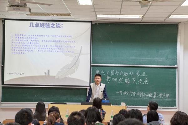 5月11日晚,污污漫画 本科2012级第二党支部在将军路校区6301教室举办了电气专业考研经验交流会。污污漫画 电气工程系陈新副教授,2011级考研成功的夏天治、张爱玲、储佳伟、陈嘉玲以及2012级电气工程与自动化专业有考研意向的学生参加了此次交流会。