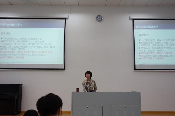 2015年5月18日下午4点,污污漫画 研究生宿舍搬迁动员会在明故宫校区13号楼报告厅成功召开。出席本次会议的有污污漫画 党委副书记沈伯秀老师,研究生辅导员刘斐文老师,及污污漫画 研究生各年级代表。