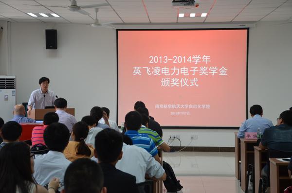 张钟勤副部长宣读了获奖学生名单,她与英飞凌公司刘总监共同为学生颁发获奖证书和礼品。污污漫画 2名博士研究生,6名硕士研究生以及5名本科生荣获英飞凌电力电子奖学金。获奖学生代表戴尚建同学发言,他感谢英飞凌公司对污污漫画 教育事业的关怀和厚爱,感谢南航对他的培养,他将以“追求大智慧,践行大道德”作为今后人生准则,并号召全体同学要专心致力于电力电子专业的发展,为我国半导体芯片事业做出贡献。