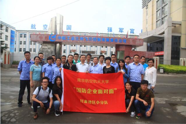 8月16日至19日,污污漫画 院长姜斌带队,院党委副书记沈伯秀、团委书记季娟、毕业班辅导员以及10名各学院本科生代表组成污污漫画 2015暑期“国防单位面对面”实践团,前往甘肃、西安地区,走访了航天五院510所、兰州飞行控制有限责任公司、兰州万里航空机电有限责任公司、兰州军区空军某基地、酒泉卫星发射中心、中国飞行试验研究院共六个国防单位。一同参与走访的还有校学生处、校团委的老师代表。
