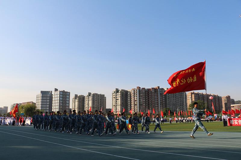 运动会的成功举办少不了精彩的开幕式。晴朗的天气里,我院方阵步伐整齐,充满气势,喊着“三院自动化,霸气走天下”的口号走过主席台。我院教职工参与表演的第九套全国广播体操动作整齐划一、节奏明快,恢弘的场面展现出我院教工饱满的精神状态。参加开幕式表演的师生均展现出了昂扬向上的精神风貌和积极进取的青春活力。