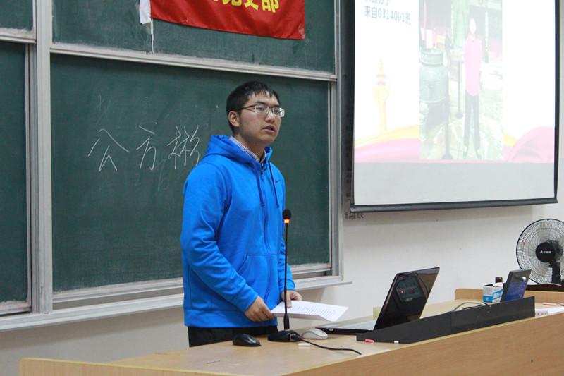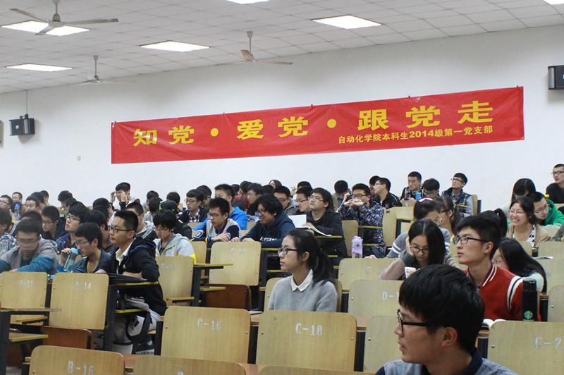 随后,入党积极分子苏茜同学带我们一起回顾了入党流程的历史,分别介绍了刘伯承同志,叶挺将军,历史学家吴晗的入党故事,用一段视频带我们走进了优秀的共产党员叶挺将军,故事反映出无论过去还是现在每一名中国共产党员所应当有的“无私奉献、百折不回”的精神,时刻警示着在坐的每一个人。接着,入党积极分子押莹同学详细为我们介绍了《南京航空航天大学发展党员工作实施细则》,向同学详细介绍了入党所要走的道路,入党积极分子崔泽群同学则为我们带来了他在南航申请入党的一年过程中的感悟,他的优秀事迹和有趣故事让同学们仿佛看到了未来的自己。预备党员陆懿晨同学们解答了入党的过程中经常遇到的一些疑惑,很多同学深有共鸣。最后由党支部书记冯攻关介绍党支部的成员及职能,并表示我们党支部的大门永远为有追求的同学而开,他热情且恳切地希望同学们能加入到党组织中来。