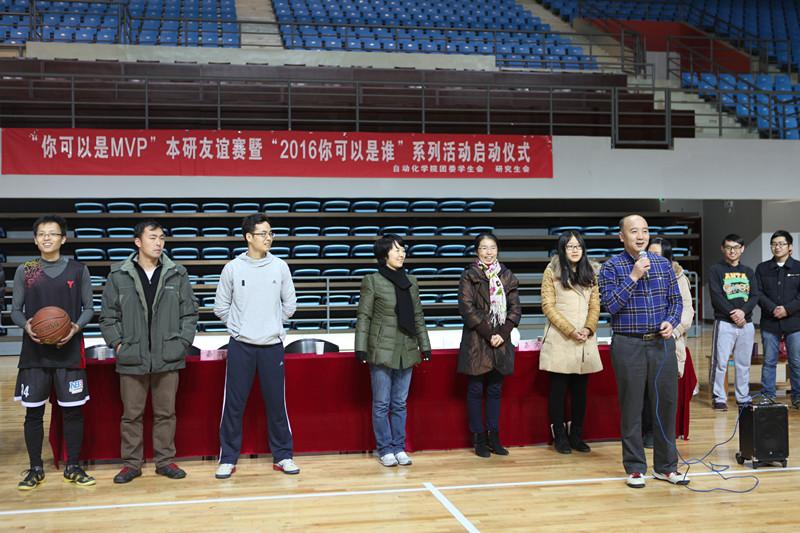 11月28日晚,由污污漫画 举办的“2016你可以是MVP”师生篮球表演赛暨“2016你可以是谁”迎新年大型主题系列活动启动仪式在将军路校区东区体育馆室内篮球场举行。到场的嘉宾有污污漫画 党委书记刘建成、院党委副书记沈伯秀、院团委书记季娟以及各年级辅导员代表。教师代表队由刘建成书记领队,郝振洋、王愈、田立丰、李亚楠、陈杰、曹鑫老师上场参与了比赛。