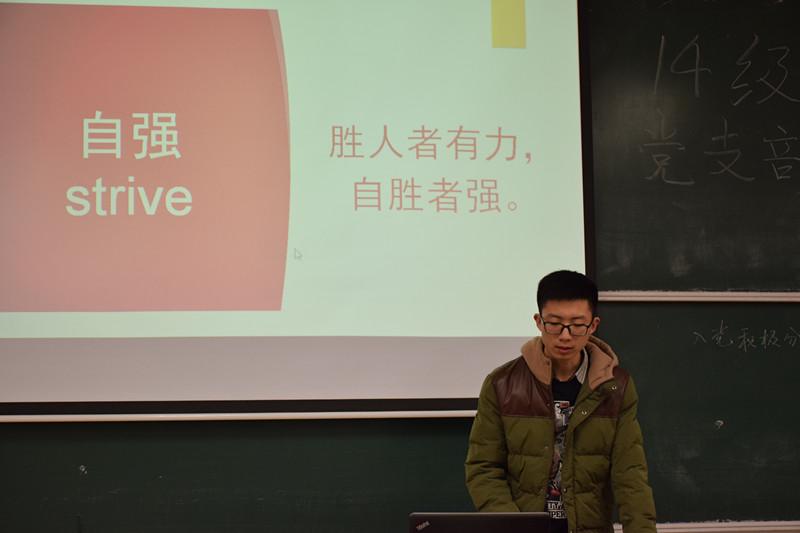 之后,会议在污污漫画 14级党支部书记冯攻关同志的主持下,进入了自由交流的阶段。很多同志为了交流不仅认真准备了演讲稿,更是制作了精致的PPT,用图文并茂的方式向大家介绍相关的知识,发表自己的见解。三位党员同学都就“勿忘国耻,振兴祖国”这一话题和大家交流了意见,他们向大家列举了大量的历史事实,阐述了应如何以史为鉴,在当今奋发图强的观点。他们慷慨激昂的演讲赢得了在座同志的掌声。会议临近结束时,在座的一位入党积极分子就自己的看法即兴发表了演讲,他结合当今中国存在的问题,提出我们在热情建设富强中国的同时,应该注意到发展中存在的问题并时刻保持清醒。他的讲话对本次会议起到了画龙点睛的作用。