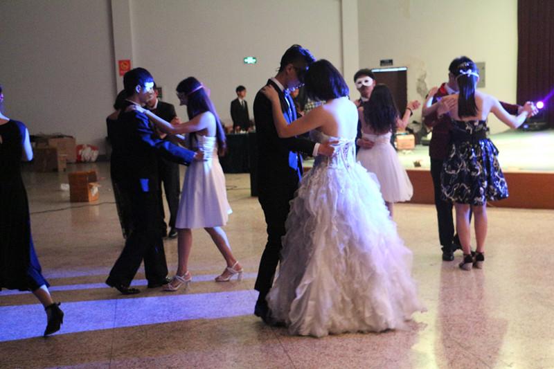 舞会在热情奔放的摇滚乐队表演中开场,现场活力无限,喝彩声此起彼伏;伴随着舒缓音乐的响起,身着礼服的绅士邀请装扮得体的女生相伴起舞。玲珑的假面藏不住青涩羞怯的面孔;温柔的音乐掩不住略显生疏的舞步。更有同学在舞台上向心上人表达爱意,将现场气氛推向高潮。在一段节奏欢快的舞曲中,大学生活动中心变成一个欢乐的舞池。能在繁忙紧张的期末学习生活中穿上盛装,能在圣诞节这个特殊的日子与舞伴翩翩起舞,能在大学阶段亲身感受舞会的魔力,是工科生大学生活中不可多得的难忘回忆。