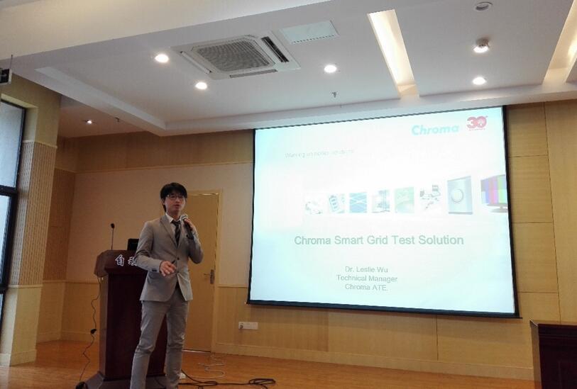 12月30日上午,Chroma公司 Leslie Wu博士来我院参加2015 International Workshop on Advanced Technologies in Power Electronics and Motor Drivers,并在南京航空航天大学污污漫画 1号楼5楼报告厅举行作了题为“Chroma Smart Grid Test Solution”学术报告。污污漫画 邢岩教授主持报告会,污污漫画 部分老师、研究生以及企业行业专家参加并聆听了报告。