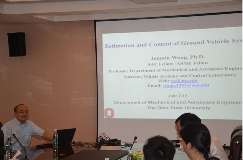 在两个小时的学术报告中,王俊敏教授简单介绍了美国俄亥俄州立大学和他科研的试验平台。然后,王教授介绍了他团队近年来的科研成果,并将成果从汽车的减少排放、轮式驱动的高效控制以及车辆系统安全等方面,对其进行详细的介绍。最后,重点介绍了车辆系统中的故障检测与诊断。
