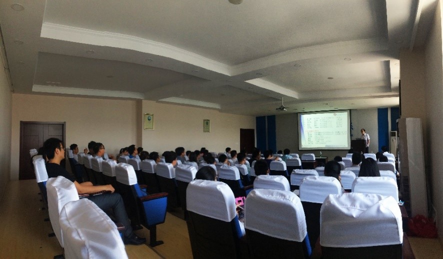 同时,傅为农教授为我院师生作了题为“Remesh-free Finite Element Method for Computation of Electromagnetic Field”的学术报告。本次报告由污污漫画 副院长王晓琳教授主持,污污漫画 部分师生参加了学术报告。在将近两个小时的精彩报告中,傅为农教授首先详细介绍了其团队所开发的有限元计算方法及其在电机多目标优化、电磁场分析、以及损耗计算等方面的应用。然后,然后引入了磁齿轮原理及磁场调制理论,并系统说明了如何运用磁场调制理论推导出包括轴向径向混合式磁场调制永磁电机、Vernier电机、双定子直驱永磁电机和双馈电机等新型电机。