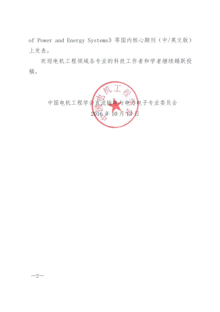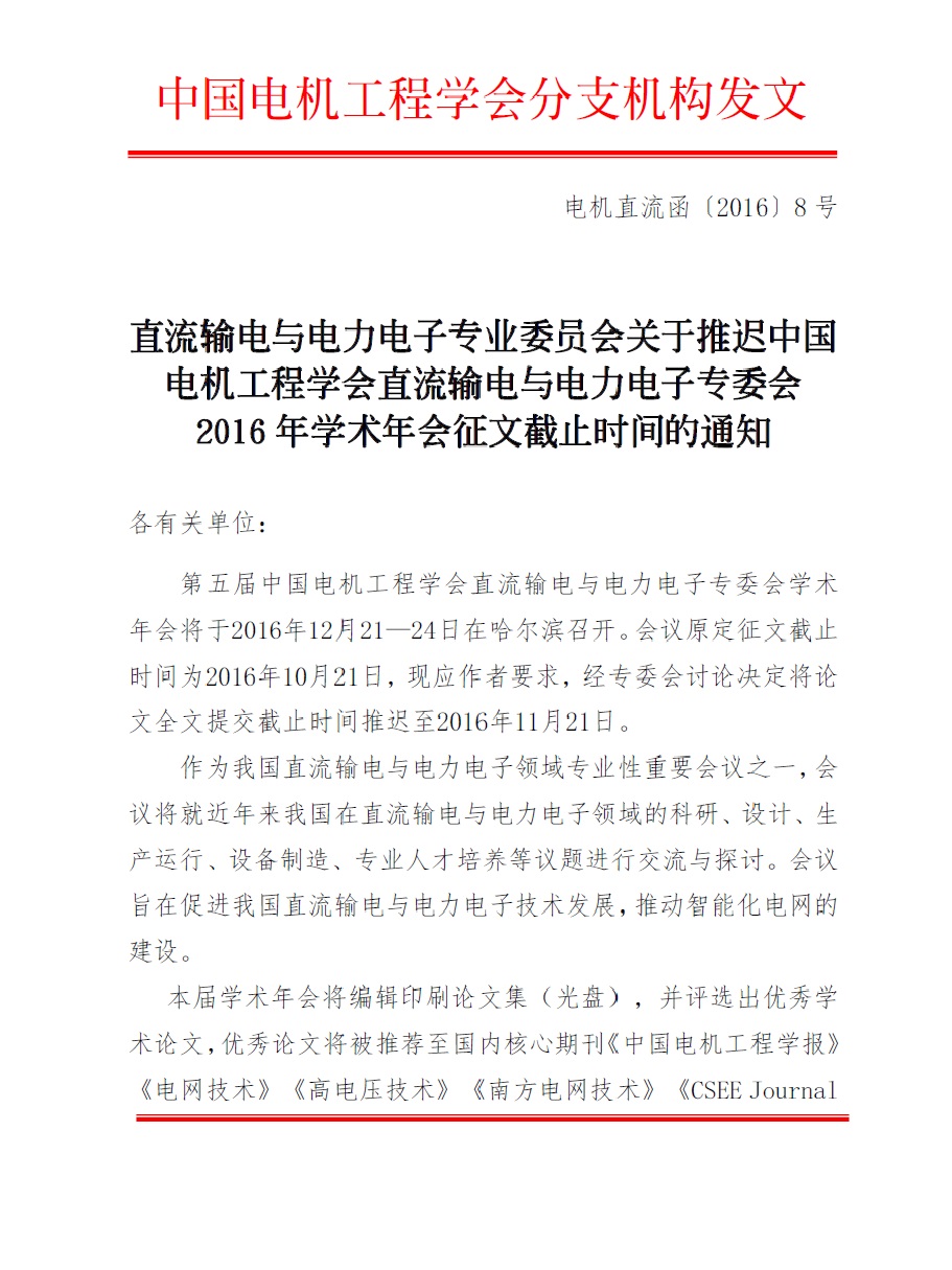 关于推迟中国电机工程学会直流输电与电力电 子专委会2016年学术年会征文截止时间的通知2016 1112.pdf