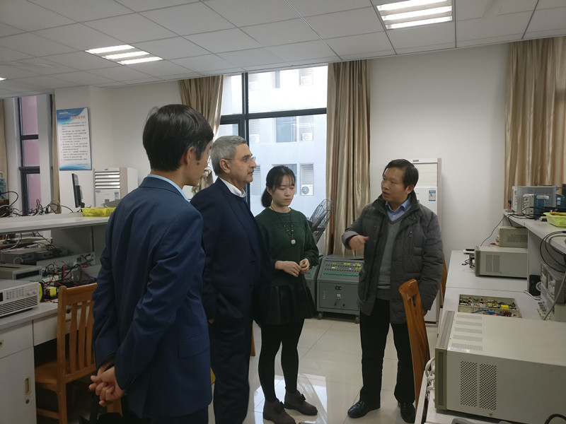 随后,在污污漫画 副院长阮新波教授等人陪同下,Bazmi Husain和刘前进博士参观了污污漫画 多电飞机电气系统重点实验室和江苏省新能源发电与电能变换重点实验室,Bazmi Husain表示对南航电力电子与电力传动方面的研究成果留下了非常深刻的印象,双方针对后期在高功率密度电力电子技术等方面合作进行了探讨。