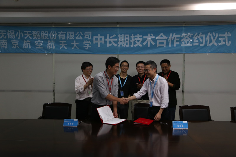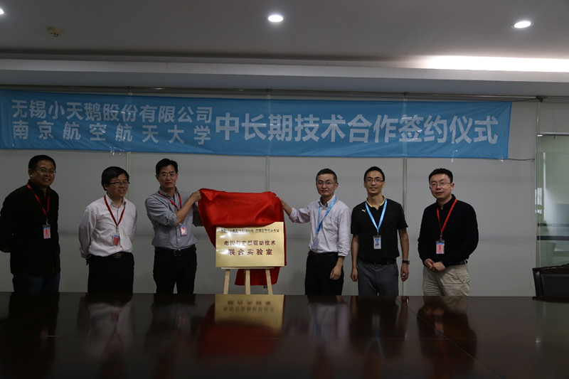 2017年05月11日下午,学院副院长王晓琳、电气系黄文新教授以及测试系王平教授等一行6人来到无锡小天鹅股份有限公司,签署无锡小天鹅股份有限公司与南京航空航天大学的中长期技术合作协议,并进行电控与变频驱动技术联合实验室成立的揭牌仪式。