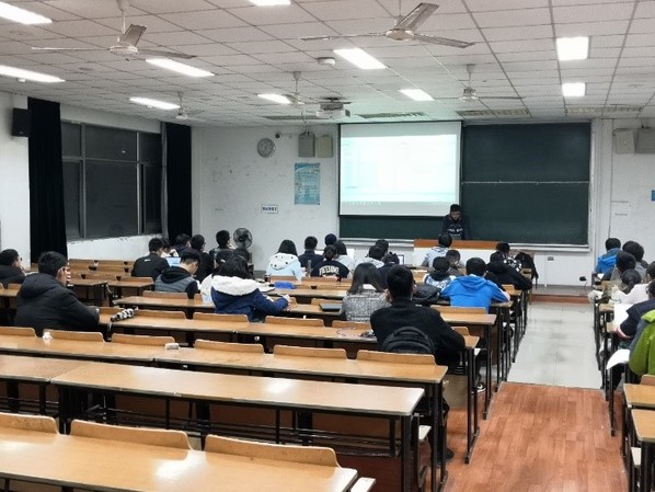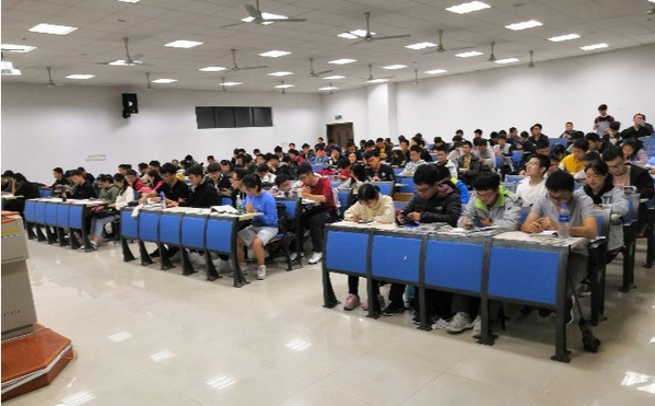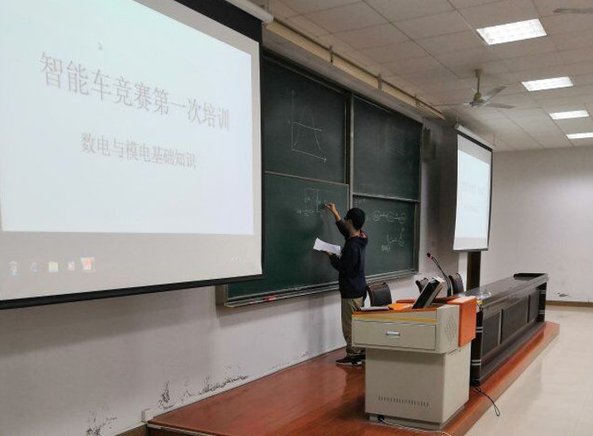 2018年10月21日将军路校区西区D2116教室,第一次培训由污污漫画 2016级电气工程及其自动化学生胡洪飞给报名队员们组织培训了模电数电的基本知识,参加培训同学达300多人。