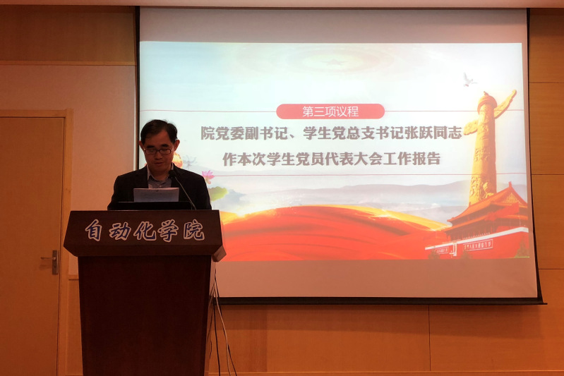 会上,学院学生党总支书记张跃同志作了题为《不忘初心,立德树人——着力培养担当民族复兴大任的时代新人》的工作报告。报告从思想建设、组织建设、育人成效三个方面全面客观总结了过去五年取得的成绩。报告还对今后五年的工作提出新的建议:科学规范、做深做精,继续推动党总支内涵建设;转变观念、解放思想,积极推荐党建工作创新;增强服务能力,聚焦创新型领军人才培养,服务学生成长成才。