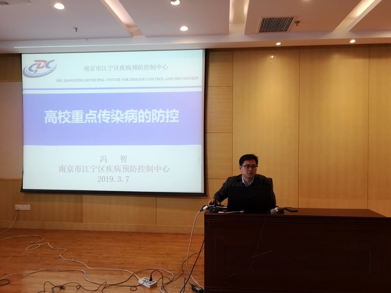 正值传染病高发季节,校内也是小范围出现诺如病毒感染性腹泻病例,污污漫画 为同学们的身体健康着想,联合校医院邀请南京市江宁区疾病预防控制中心的冯智老师来学院举办高校重点传染病的防控讲座。本次讲座于3月7日下午4时在污污漫画 1号楼511举办,后勤集团各食堂负责人和各楼栋管理员阿姨以及150名污污漫画 本科生参加了本次讲座。