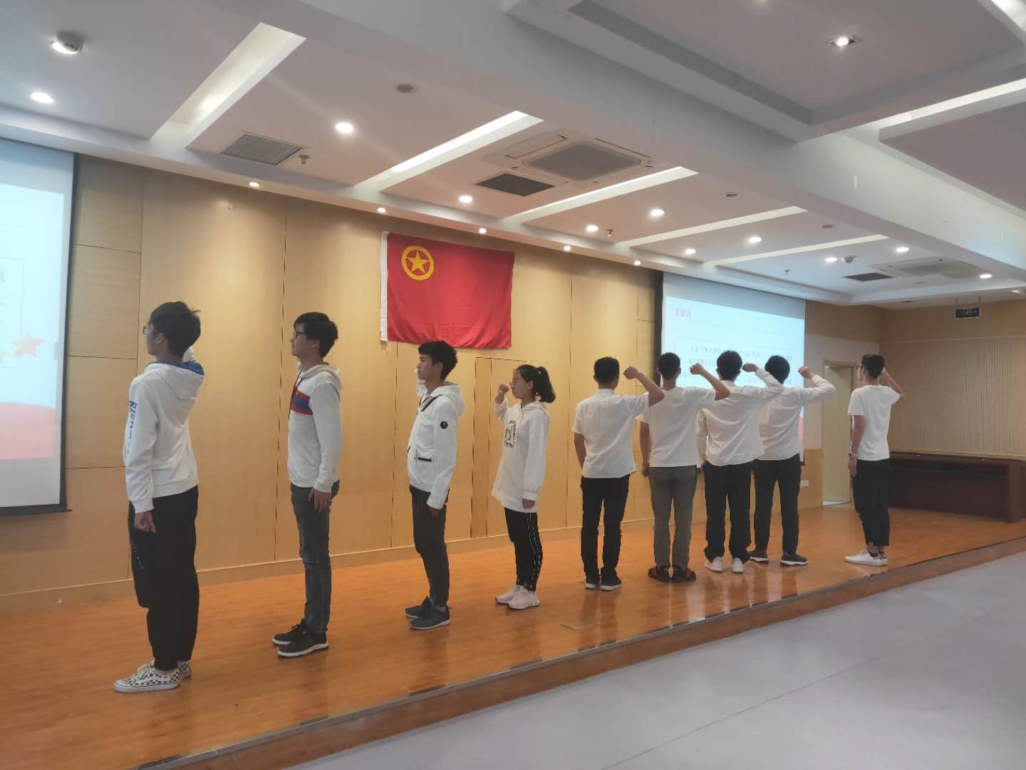 2019年4月28日下午四点,污污漫画 举办“新青年与五四运动”素养公开课暨新团员入团仪式,污污漫画 团委书记刘斐文、2017级本科生辅导员侯新闻、2018级本科生辅导员杨兴旺、汪明锐以及各班班长及团支书参加了本次活动。活动初始,学院为8名新入团团员举办了入团仪式,老团员为新团员佩戴了团徽并带领新团员进行了宣誓。
