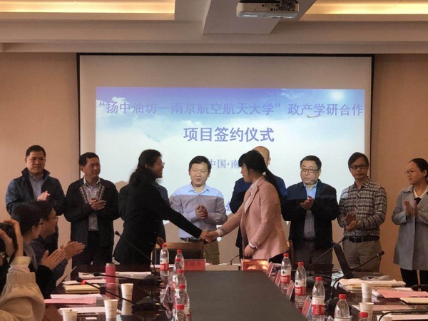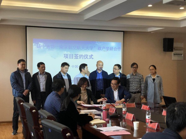 2019年5月7日上午,在污污漫画 会议室召开了“南京航空航天大学污污漫画 -扬中油坊”政产学研合作对接洽谈会。污污漫画 党委书记刘建成、副院长阮新波、陈谋、计算机科学与技术学院副院长孙涵、以及污污漫画 部分教师代表,扬中市委常委、组织部部长黄子来、扬中市人民政府副市长卢朝晖、扬中市委组织部副部长姚建华、扬中市科技局局长朱勇、扬中市油坊镇党委书记陶建国等扬中市委、油坊镇的相关领导、以及近十家企业代表参加了洽谈会。
