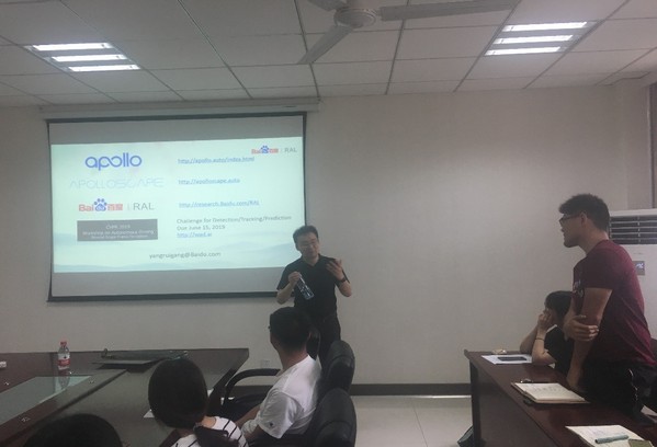 2019年05月24日下午,美国肯塔基大学计算机系教授、百度三维视觉首席科学家杨睿刚教授应污污漫画 和国际合作处邀请在将军路校区污污漫画 1号楼405会议室做题为“Sim-to-Real:Using Simulations for Robotics Perception and Navigation”的学术报告。报告由南京航空航天大学控制系冒泽慧副教授主持,污污漫画 的部分师生参加了报告会。