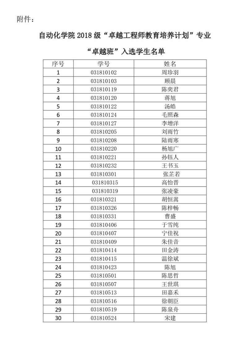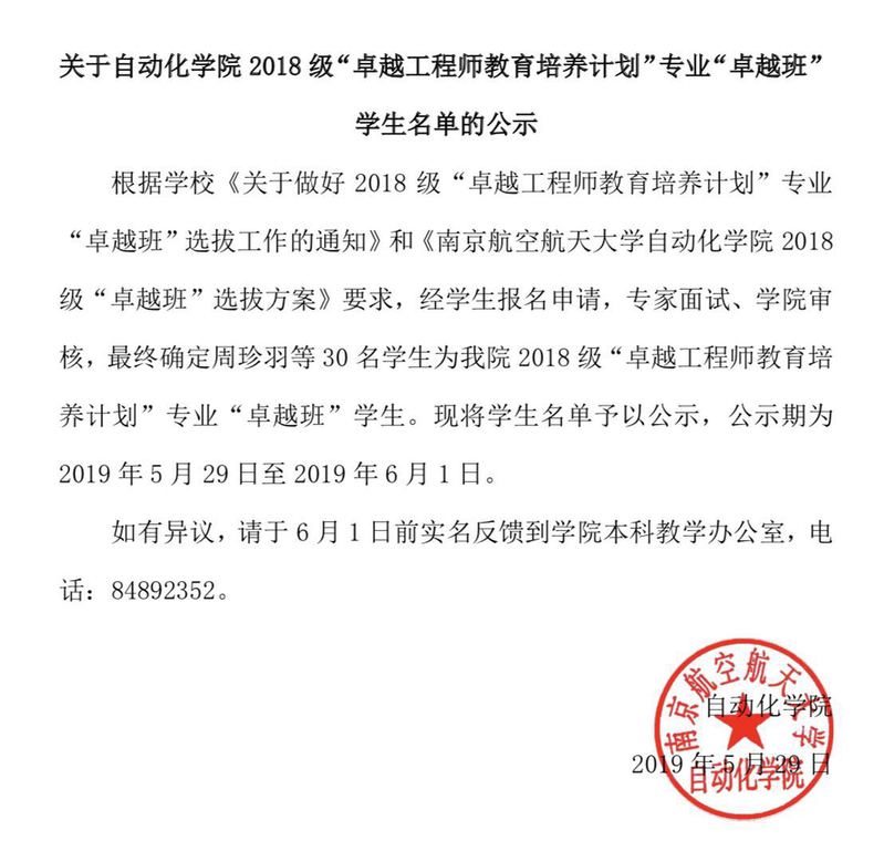 关于污污漫画 2018级“卓越工程师教育培养计划”专业“卓越班”学生名单的公示
