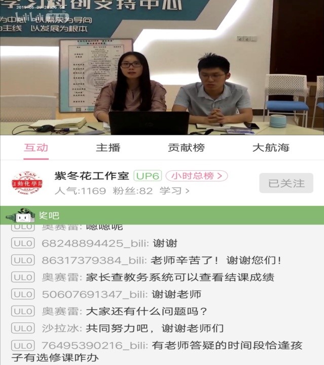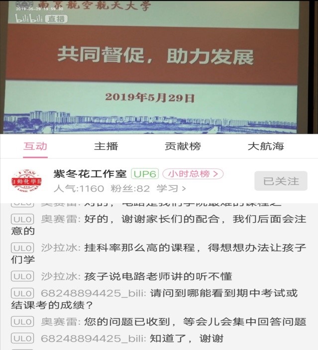 为了进一步促进家校沟通,形成教育合力,促进学生学业水平和综合素质的提高,2019年5月29日18:30污污漫画 2018级以视频直播的形式召开了线上家长会。结合大一下学期的特点、学生前半学期的学习情况等,辅导员杨兴旺、汪明锐为家长做了详细的介绍,并分层分类地提出相应建议。此次会议在线观看人次达到1169。