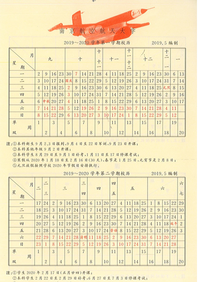 附件2:2019-2020学年南京航空航天大学校历