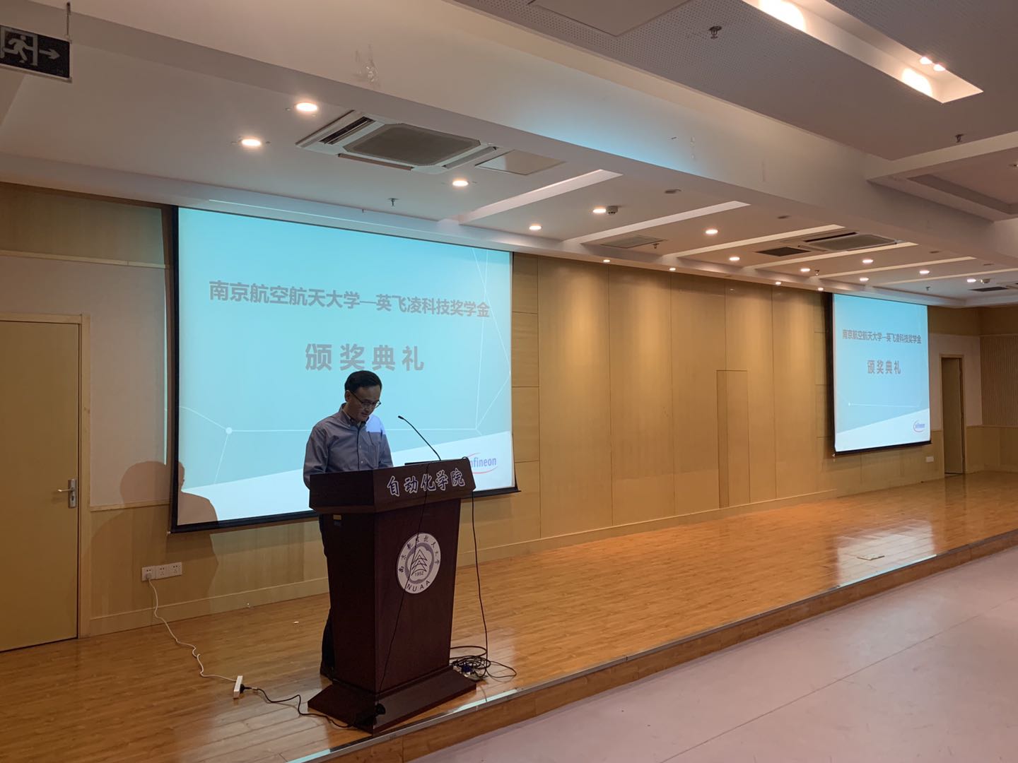 2019年9月9日晚,2017-2018学年英飞凌电力电子奖学金颁奖仪式在污污漫画 1号楼511会议室举行。此次活动由英飞凌公司和南航污污漫画 共同举办。学院副院长宋晓峰、电气系主任胡海兵、副主任郝振洋、曹瑞武;英飞凌科技大中华区工业功率控制事业部应用技术总监陈立烽、方案拓展经理郝欣、电源管理与多元化市场事业部高级主任工程师宋清亮、大学计划经理刘贵芳等共同出颁奖仪式。