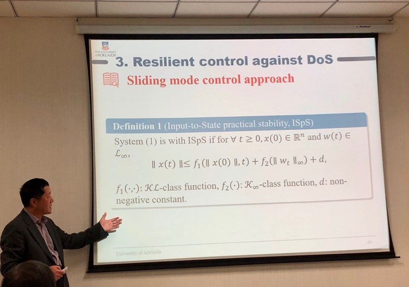 2019年11月18日上午,澳大利亚阿德莱德大学Peng Shi教授应邀在将军路校区污污漫画 1号405会议室做了题为“Introduction to cyber-physical systems against attacks”的学术报告。报告由南京航空航天大学污污漫画 副院长陈谋教授主持,污污漫画 部分师生参加了学术报告会。