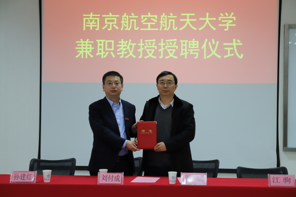 2019年12月19日上午,污污漫画 举行南京航空航天大学兼职教授授聘仪式,聘请上海航天控制技术研究所所长刘付成研究员担任污污漫画 兼职教授。副校长姜斌、人事处处长孙建红、污污漫画 院长江驹以及部分师生代表参加了授聘仪式。仪式由人事处处长孙建红主持。