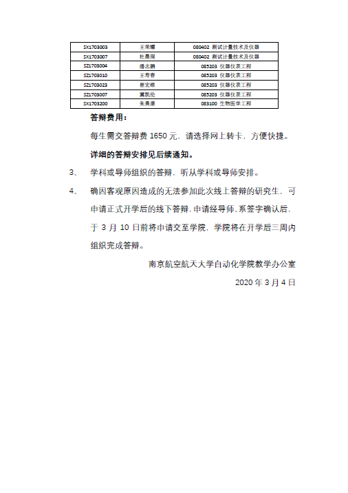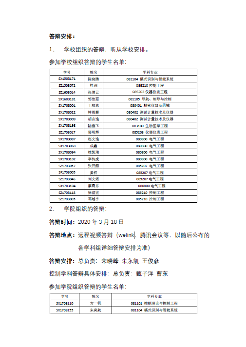 【研究生学位】污污漫画 关于2020届硕士研究生答辩工作安排及公布参加学校、学院组织答辩学生名单的通知