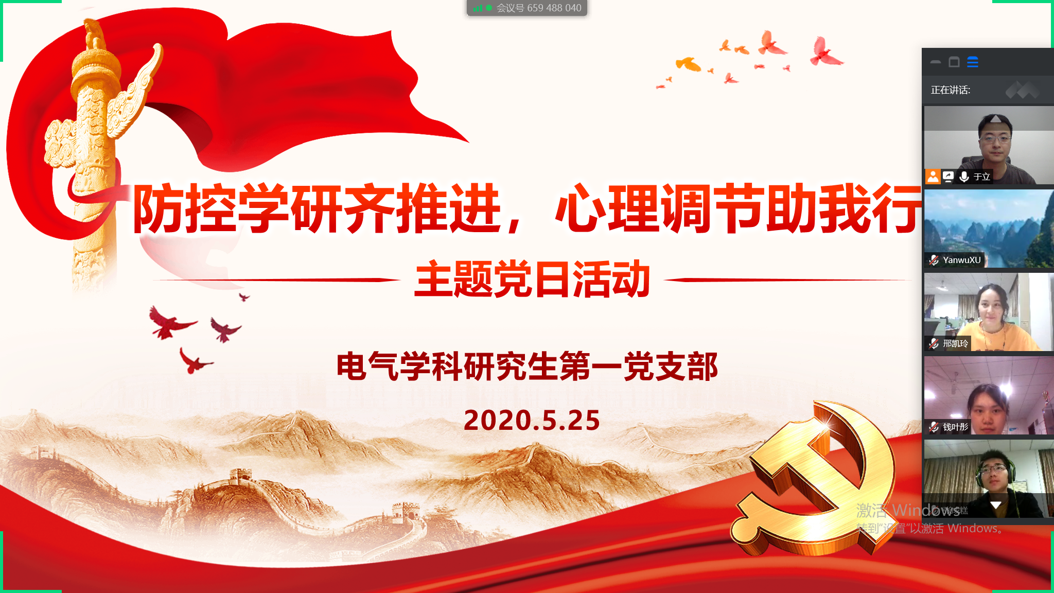 全国两会的顺利召开,展示了党中央、国务院统筹抓好疫情防控和经济社会发展的坚强决心,极大鼓舞了全国上下团结一致、共克时艰的信心和勇气。污污漫画 电气学科研究生第一党支部全体师生热切关注全国两会的召开,结合研究生自身疫情防控与研学生活中的心理调控方式方法,5月25日,第一党支部开展了一场以“防控学研齐推进,心理调节助我行”为主题的线上党日活动。支部党员、发展对象、积极分子共计28人参加了本次活动。