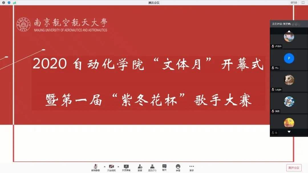 2020年6月6日下午15:00,污污漫画 第十四届“文体月”开幕式暨第一届“紫冬花杯”歌手大赛初赛顺利举行。受疫情影响,本届“文体月”活动采取线上举办的方式。学院党委副书记张跃老师、院团委书记陈慧云老师、研究生辅导员汤呈懿和王明月老师、本科生辅导员汪明锐和宋欣老师作为嘉宾线上出席了本次开幕式。