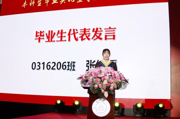 最后,进行了隆重的学位授予仪式,校领导、学院领导、院长助理和各系主任为全体毕业生颁发学位证书并拨正流苏。