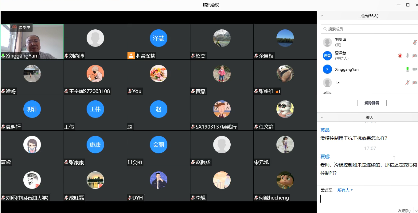 在本次线上学术报告中,严星刚副教授首先简要介绍了滑模控制研究的历史、现状和未来发展趋势。在参会师生对滑模控制有了大体了解后,严星刚副教授重点介绍了将滑模技术应用于电力系统再热汽轮机负荷频率控制的最新成果,提出了一种改进的负载频率滑模控制方法,使被控系统在存在时滞和非线性干扰的情况下仍能保持一致的最终稳定。在此之后,通过一个独立供电系统的仿真,验证了该方法的有效性。