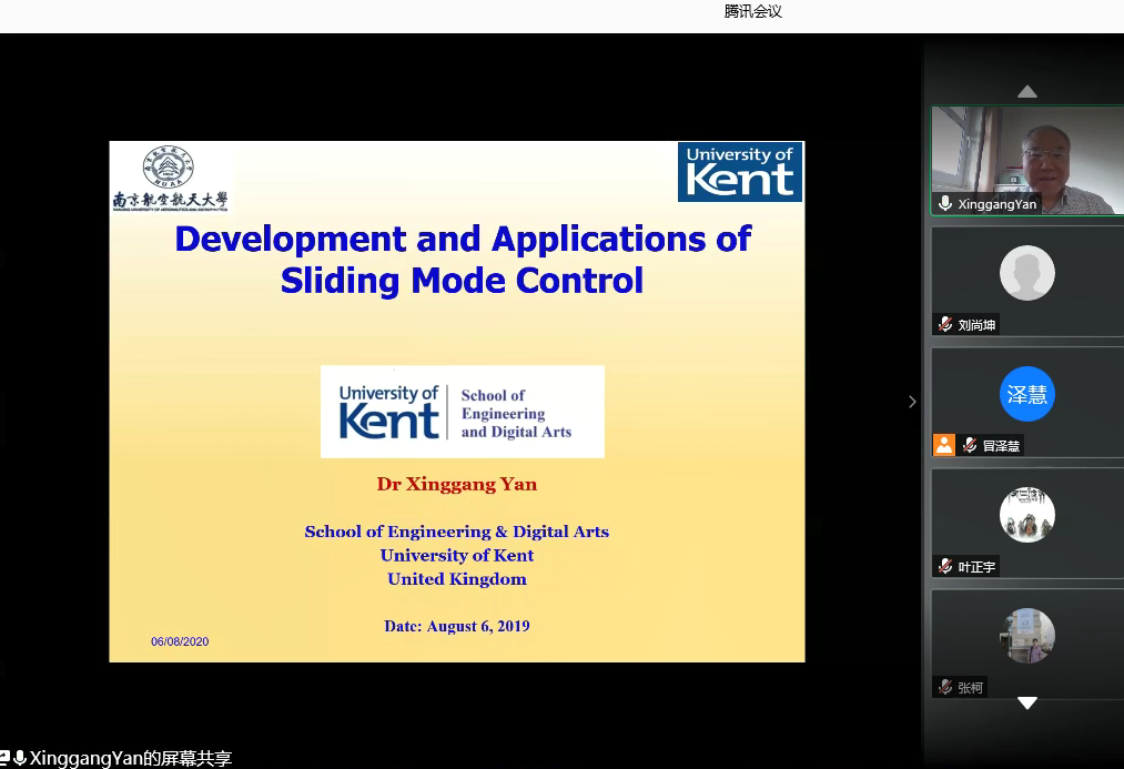 8月6日下午,英国肯特大学工程技术与数码学院严星刚副教授应我校国际合作处和自动化学院的邀请,通过腾讯会议作了题为“Development and Applications of Sliding Mode Control”的线上学术报告,报告由副校长姜斌教授主持,污污漫画 冒泽慧、张柯、张绍杰、马亚杰等师生在线参加会议。参会师生对严星刚副教授的交流分享表示热烈欢迎。