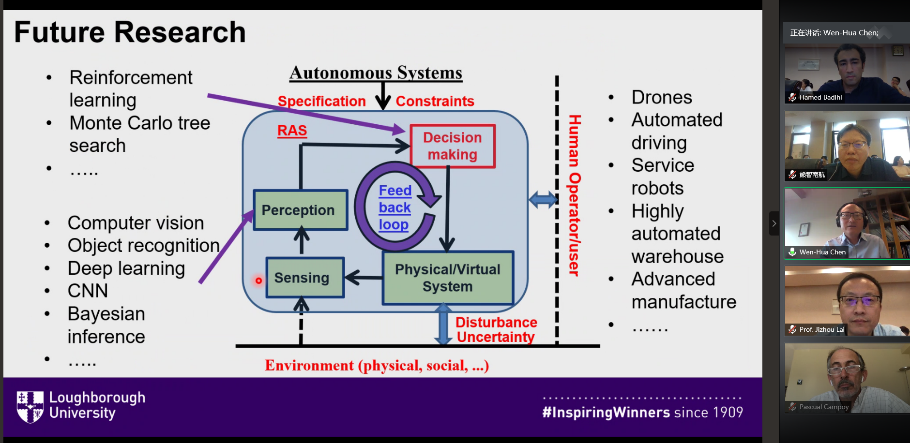 AGNCUS会议主席、南京航空航天大学副校长姜斌教授向与会嘉宾代表和师生发表了欢迎词,我院江驹院长主持了开幕式。研讨会中,来自英国帝国理工学院、英国拉夫堡大学、西班牙马德里理工大学、澳大利亚新南威尔士大学、英国伦敦城市大学、英国爱丁堡大学、香港理工大学、千寻位置网络有限公司及污污漫画 的11位教授、专家、学者,就无人系统的自主制导、导航与控制领域的相关科研学术问题开展学术报告和交流。污污漫画 及海内外师生150余人通过线上线下的形式参加了此次交流研讨。