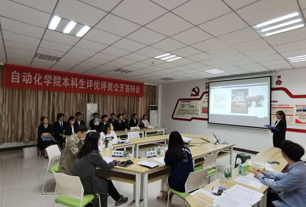 10月14下午,污污漫画 2019-2020学年本科生国家奖学金、年度特别嘉奖公开答辩在污污漫画 一号楼开展。公开答辩分四个会场进行,校团委副书记丁琛,学院党委副书记张跃,院长助理朱永凯,团委书记陈慧云分别担任各会场评审组长。校资助管理中心主任唐志文、自动控制系副主任张绍杰、电气系党支部书记陈杰、测试系党支部副书记李真、生物医学工程副主任杨雅敏和教务员、辅导员代表担任评委进行现场评审。每个会场还设置了学生评审团。
