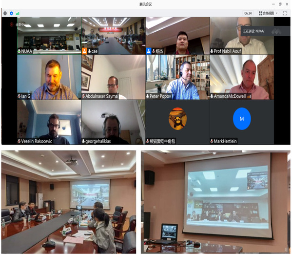 本次会议是一次采用线上和线下相结合的创新方式完成的国际学术交流活动,旨在为两校之间的专家学者就无人系统与控制领域提供一个高端学术交流平台,沟通和交流前沿理论、关键技术和相关的应用成果,进一步加强加深全球战略合作伙伴之间的实质性合作。英国伦敦城市大学Christopher McDowell(Assistant Vice President International)、 Peter Popov(Associate Dean International)、Mark Hertlein(Head of Global Engagement)、Nabil Aouf(Director of Systems, Autonomy and Control Centre and the London Space Institute)等;南京航空航天大学副校长姜斌,国际合作处处长张卓,国际合作处副处长沈敏,国际合作处项目科科长田立丰,污污漫画
