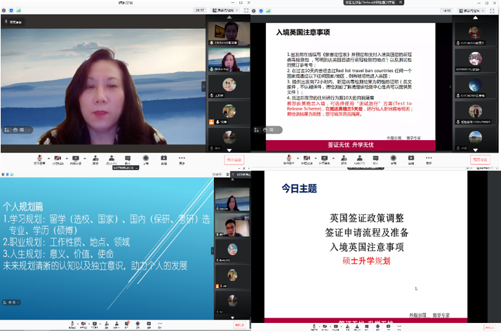 此次中英班交流家长会在热烈的交流中结束。通过开展线上签证培训家长会,同学们进一步了解了英国签证办理流程、学习和生活情况,及时掌握了国际学术领域发展信息,开阔视野,更新学习理念。未来,两院也将继续积极促进学校和国外高校的合作交流,切实发挥出国留学生的桥梁纽带作用。