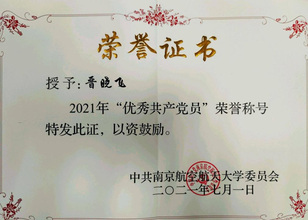 团队目前共有共产党员17人,其中教师党员3人,博士后党员3人,学生党员11人。自立项以来,团队不断加强党性修养,积极学习党史党章,在实验室布置党史学习墙。团队思想觉悟高,不断学习党和国家新思想、新政策,在科研之余经常组织师生共建党日活动,如参观大金山国防园等。团队定期组织观看《高山下的花环》、《横空出世》等红色电影,并由预备党员和积极分子等分享观影感悟,既能让大家在繁重的科研任务之外放松心情,又能学习老一辈革命家、科学家不怕流血牺牲、迎难而上的精神,号召团队师生不忘历史、警钟长鸣,不忘初心,科研报国。团队成员中多位同学获得院校级别荣誉,其中团队学生负责人晋晓飞博士生荣获2021年南京航空航天大学优秀党员,朱柔君硕士生荣获2021年污污漫画 优秀党员。