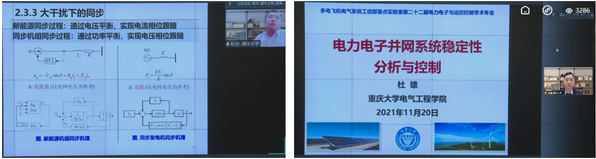 南瑞集团薛禹胜院士,国家电网公司陈维江院士,清华大学耿华教授,国家杰出青年科学基金获得者、重庆大学杜雄教授,国家杰出青年科学基金获得者、东南大学花为教授,国电南瑞稳定公司副总经理李威博士和阳光电源有限公司张巍博士应邀作大会报告,内容涉及新型电力系统与故障防御、低频交流输电技术、新能源集群控制及稳定性、磁通切换电机、新能源人工智能等。重点实验室也特意安排4位青年学者作学术报告,内容涉及磁集成技术、等离子技术和特种电机与控制技术等。阮新波教授和污污漫画 副院长张卓然教授分别主持了上午和下午的大会报告。