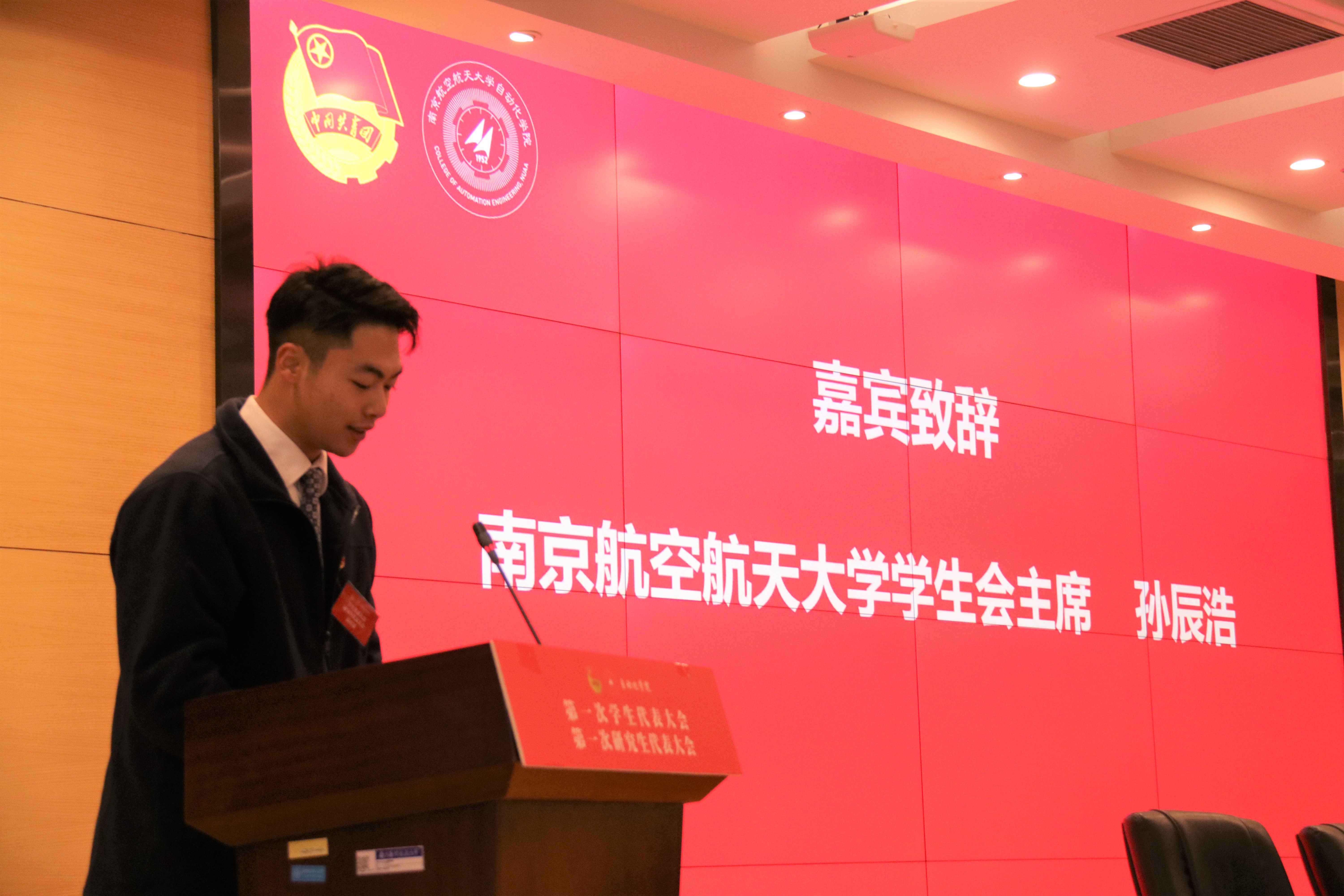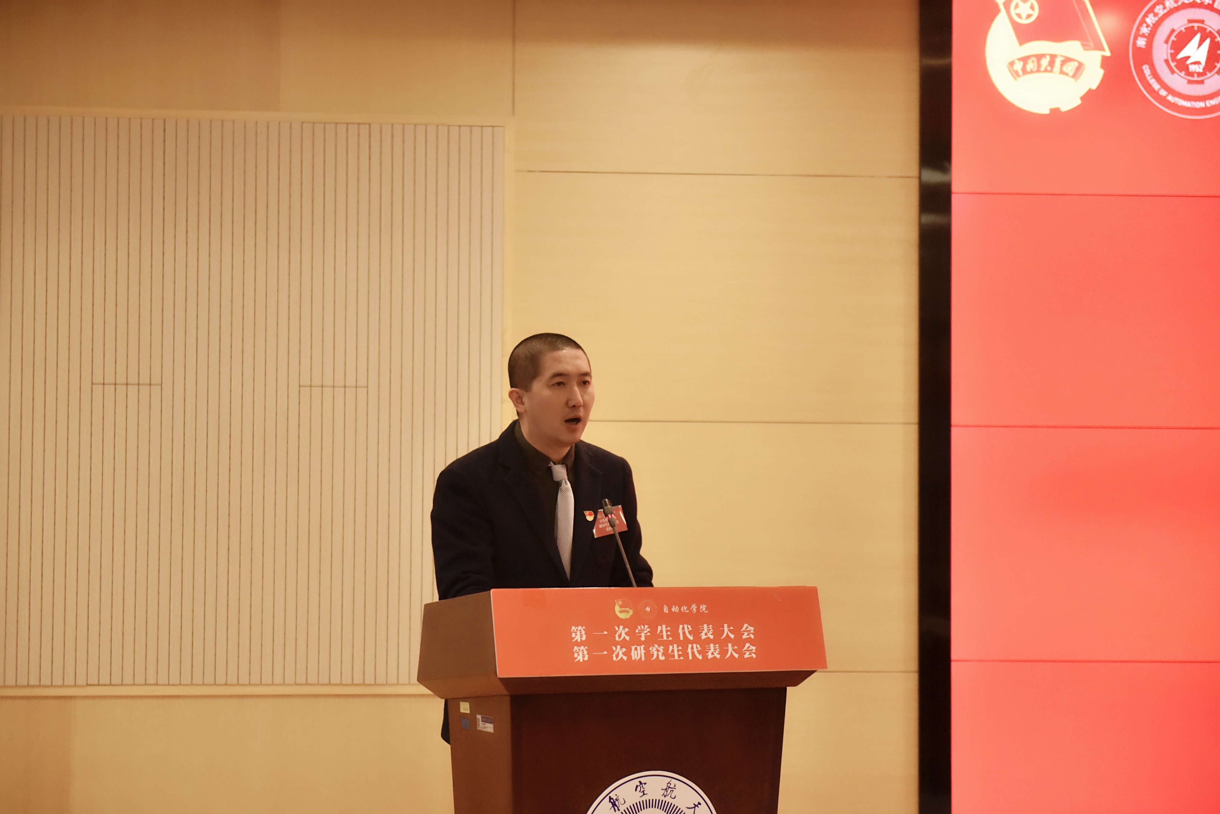 校学生会主席团成员孙辰浩对本次学代会、研代会的召开表示祝贺,他对学院学生会、研究生会开展的各项工作,以及为校学生会、研究生会发展做出的积极贡献给予了充分肯定。也希望院学生会、研究生会紧密团结在以习近平同志为核心的党中央周围,高举中国特色社会主义伟大旗帜,锐意进取,埋头苦干,实现卓越追求。